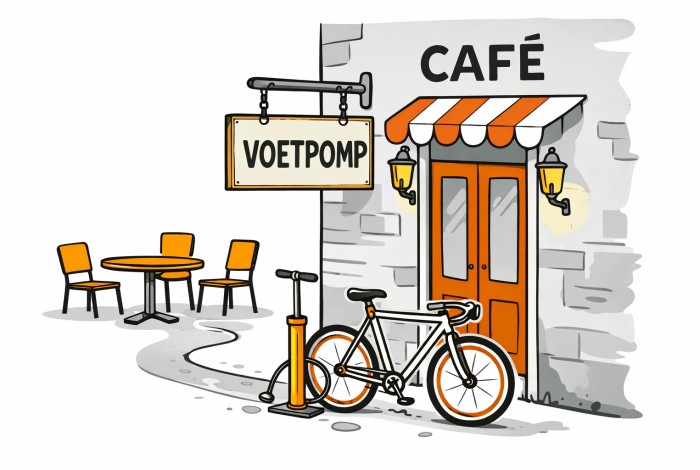 Vroeger hing het bord ‘VOETPOMP’ bij veel cafés buiten aan de muur. Dit was een lokkertje voor mensen op de fiets om daar te stoppen en hun banden op te pompen.